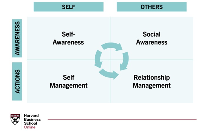 As per HBR Online 2019 insights, Emotional Intelligence (EI) in a workplace is essential for success, with four key competencies: self-awareness, self-management, social awareness and relationship management. Self-awareness helps individuals understand their emotions, strengths and weaknesses, with 360-degree feedback being a valuable tool for improvement. Self-management involves controlling emotions under stress and responding thoughtfully, while social awareness, particularly empathy, enables better communication and collaboration. Leaders who excel in empathy make better decisions and coaching. Lastly, relationship management focuses on resolving conflicts and influencing others, which is critical for team cohesion and morale, as respectful treatment is key to job satisfaction.